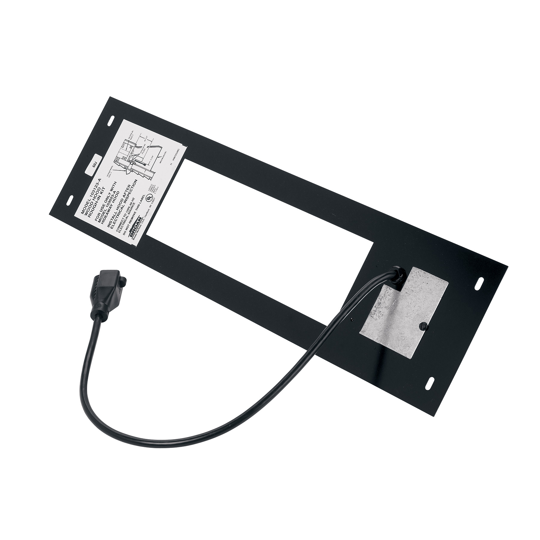 - Kit consists of the plate with electrical outlet box, power cord, and mounting hardware